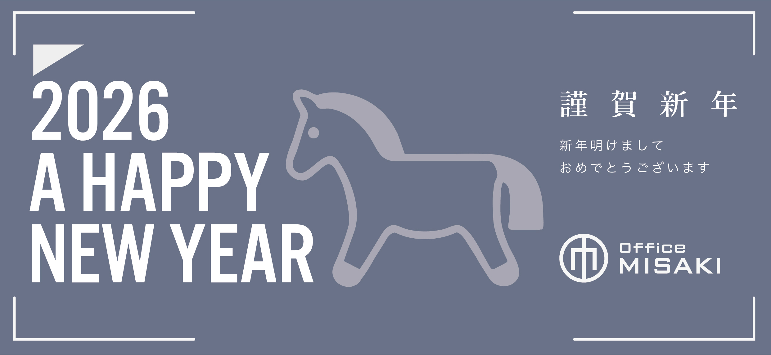 新年明けましておめでとうございます。旧年中は格別のご高配を賜り、厚く御礼申し上げます。2026年は丙午(ひのえ・うま)の年。馬力(ばりき)を上げ、皆様と共に躍進する一年にしてまいります。本年も変わらぬご指導ご鞭撻を賜りますようお願い申し上げます。